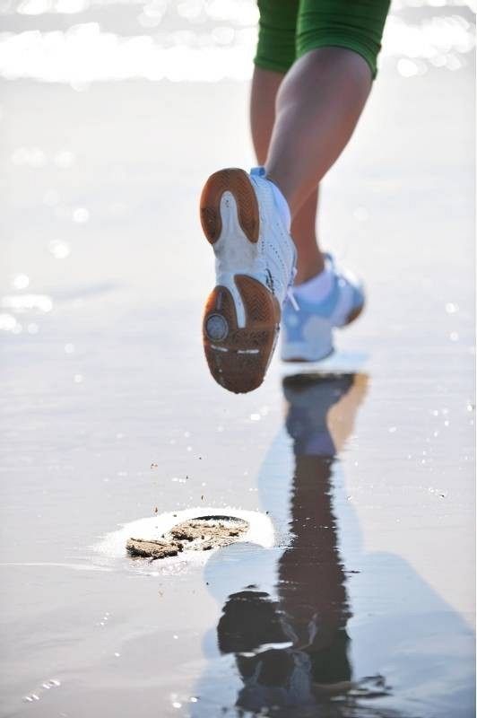 Bieganie po plaży o wschodzie lub zachodzie słońca.